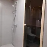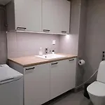 Spacious Apartment For 4 With Sauna har en dusch och en tvättmaskin för din komfort.